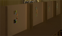 In der Ausstellung wurde die Zerlegbarkeit von Farben oder von bestimmten farbigen Abschnitten eines Spektrums nicht gesondert thematisiert. Es lässt sich aber eine ganze Reihe solcher Versuche mit eben diesen Mitteln konzipieren und generieren.