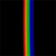 (durch die Auffangschablonen) abgesehen wird. Wirft man das Bild eines Lichtspalts via Spaltdia und Projektor auf einen Auffangschirm, so zeigt sich eben ein Lichtspalt umgeben von Finsternis (» Abb. 14). Positioniert man mit entsprechender Ausrichtung ein Prisma vor den Projektor, so wird das Licht (das durch den Spalt fließt) abgelenkt und aufgefächert und es erscheint ein Regenbogenspektrum (Abb. 16). Im Blick aber durch dasselbe Prisma und in dieselbe Richtung wie das