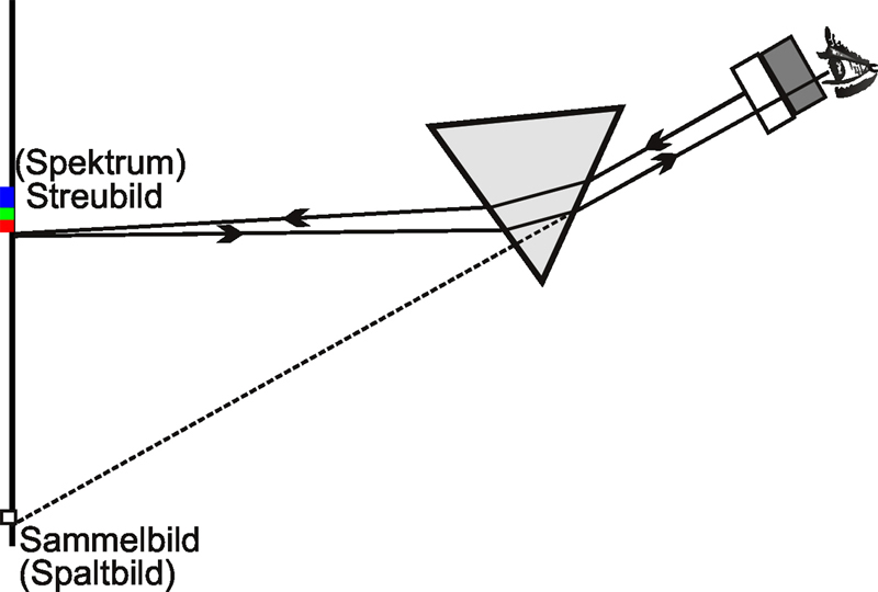 Licht in das Prisma fällt, zeigt sich dem Auge wiederum das weiße Spaltbild bzw. der Lichtspalt, wie er auch ohne Prisma