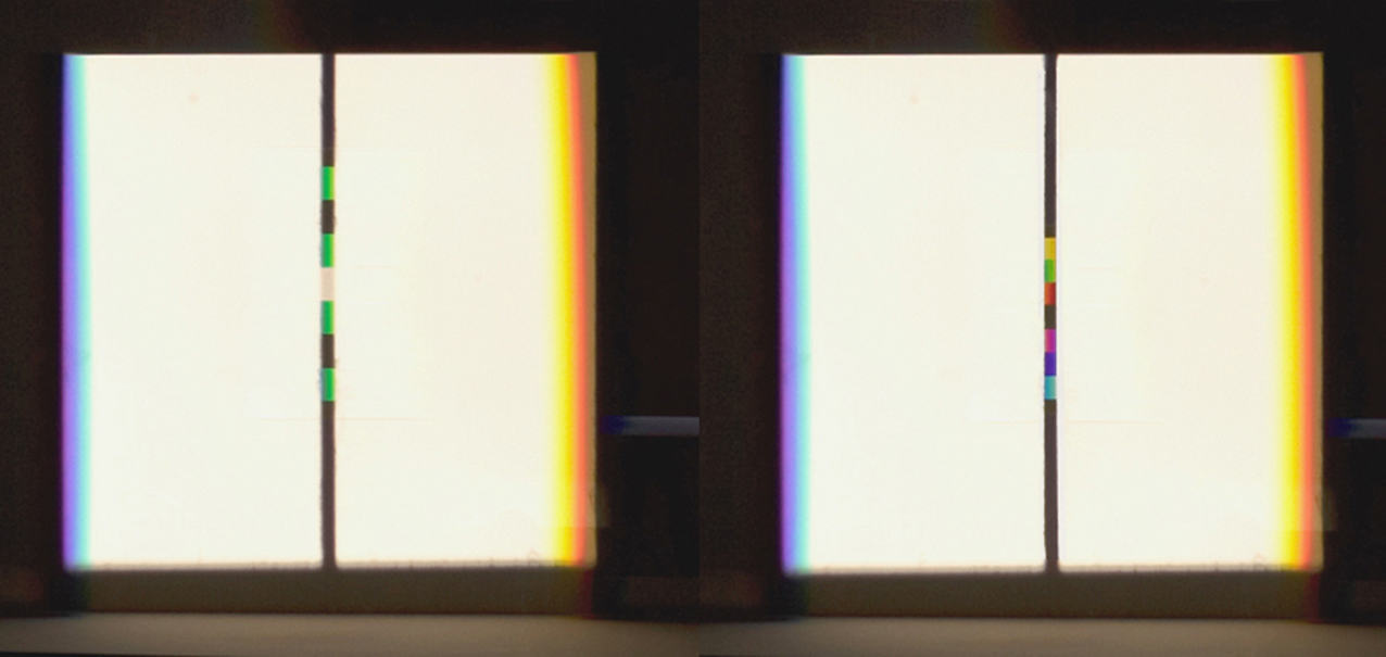 Abb. 25, Abb. 26 spektrale Farbfragmente, links durch Farbdurchlass, rechts durch Farbüberblendung