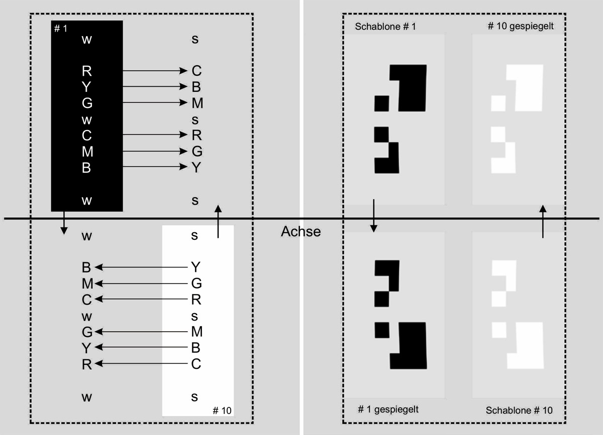 Abb. 32 farbkomplementäre Anordnung von #1 und #10 im Spiegelbild